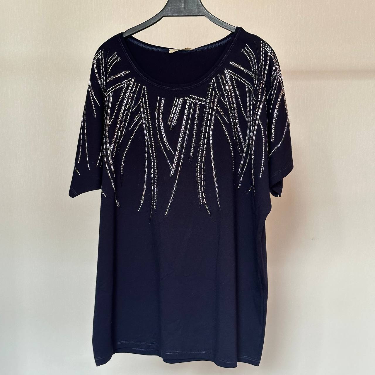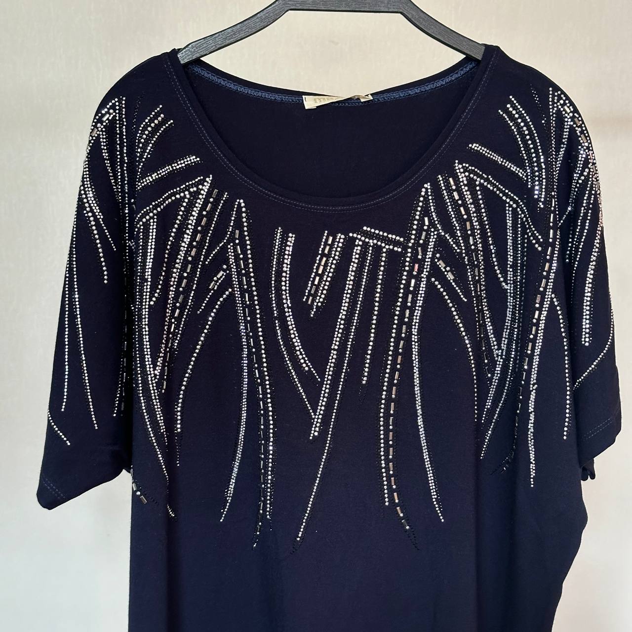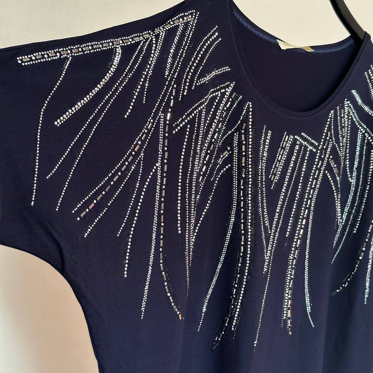 بلوز سایز بزرگ کشی وارداتی نگین کاری سورمه ای