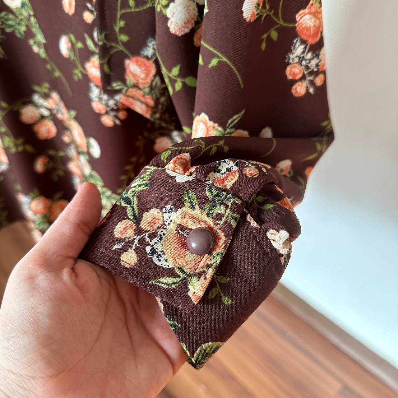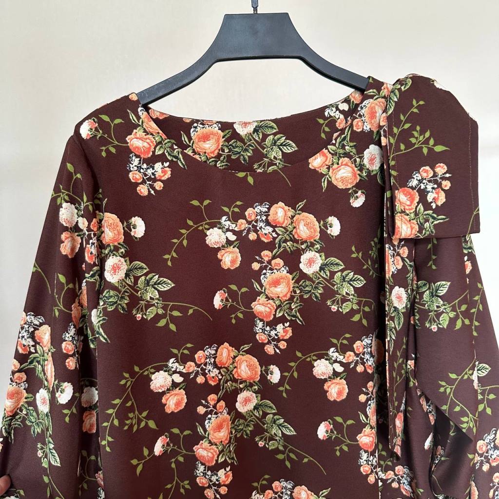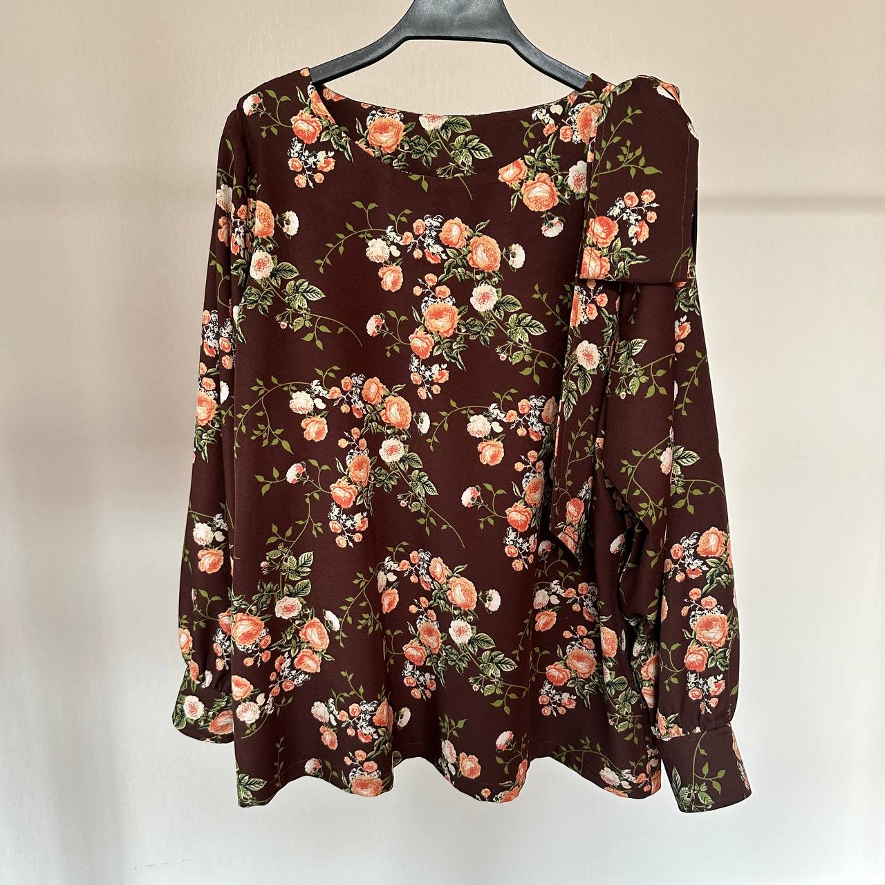شومیز سایز بزرگ دخترانه آستین بلند سرشانه پاپیونی قهوه ای